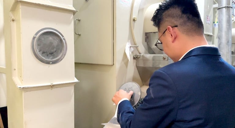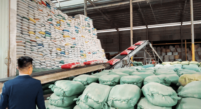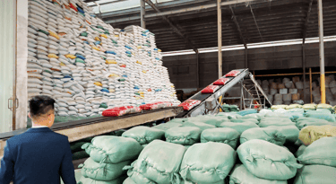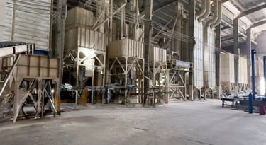 Rice taken from barges into factory for processing. Size-seperating for required broken rate and color-sorting to remove color-unqualified grains